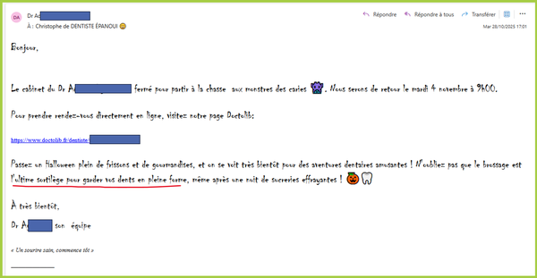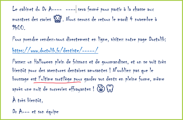 Ce message est parfaitement adapté au public de ce praticien :