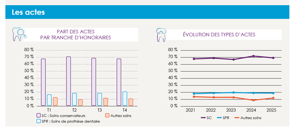 Comme on le voit, les soins conservateurs représentent la majorité des actes avec une grande stabilité dans le temps.